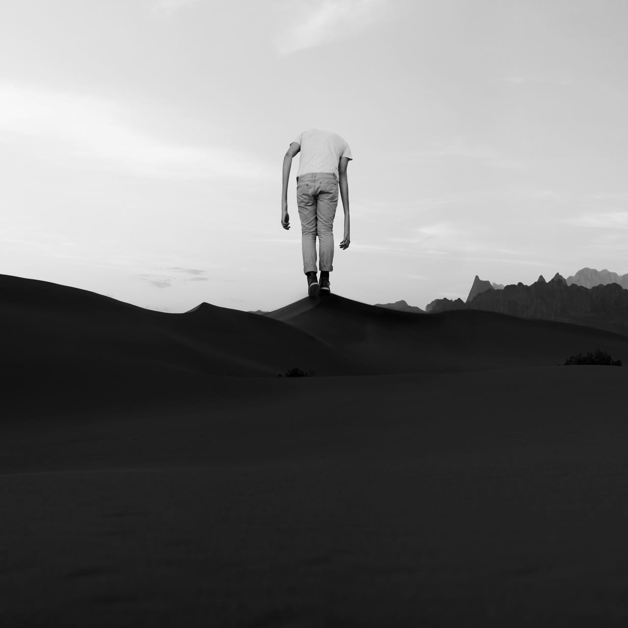 Rivera’s work carefully joins the surreal with nature to create landscapes and spaces that seem magical, mystical or desolate. His strongest pieces, in black and white, cast figures as larger than life than the land they stand on (The Giants), or too small and fragile to survive the rocky landscape (Suspended). Haunting is a word that comes to mind.